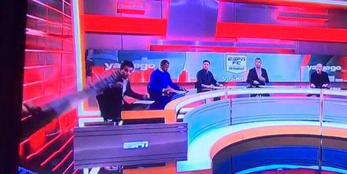 Un aparatoso accidente ocurrido este martes al periodista Carlos Orduz en los estudios de ESPN Bogotá causó un gran susto a los conductores de un espacio televisivo y también a los televidentes, ya que ocurrió mientras se encontraban en una transmisión en vivo.