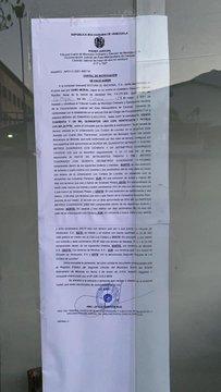 La medida se ejecutó la tarde de este viernes. El cartel de notificación indica que se cubre la cantidad de 141.501,24 petros del total de 237.000 petros que obliga a pagar el Tribunal Supremo de Justicia.