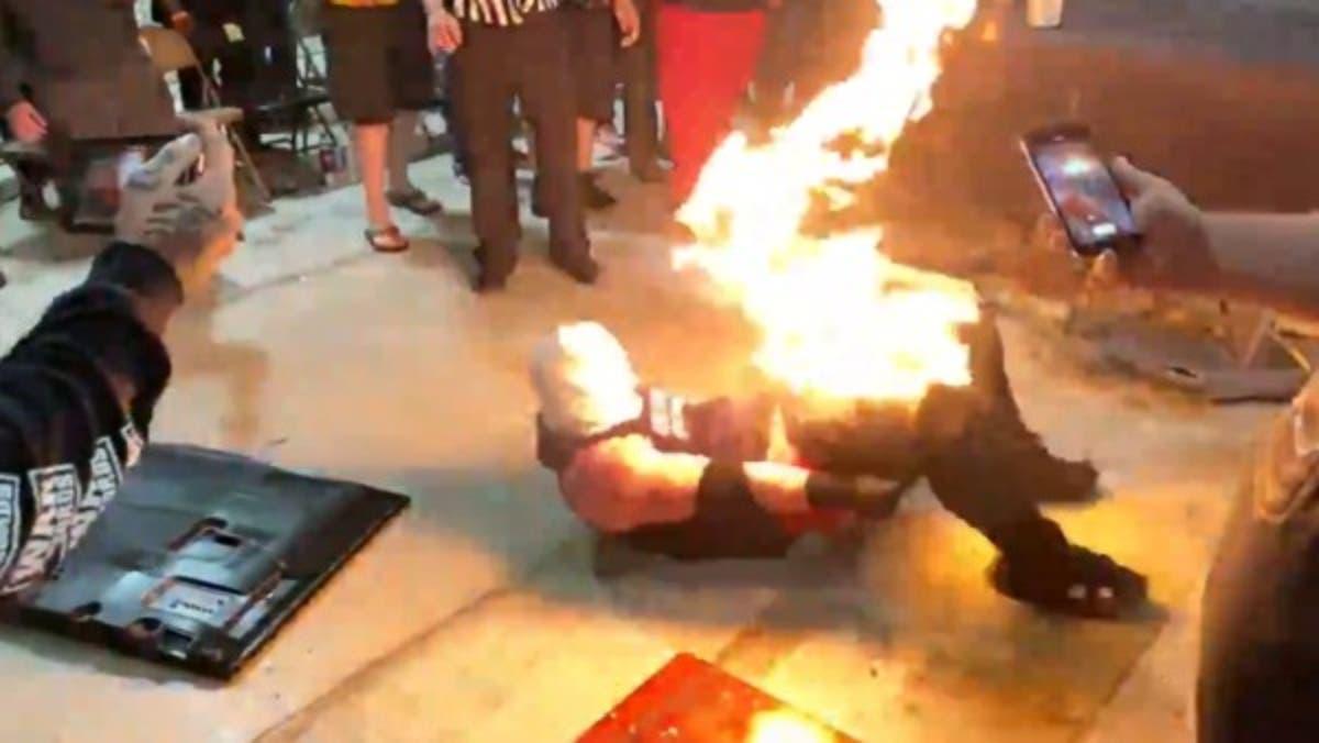 Peleador de lucha libre sufre quemaduras por un truco de combate
