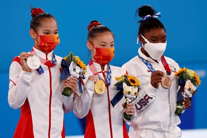 La gimnasta china Guan Chenchen, de 16 años, ganó el oro con 14,633 puntos, seguida de su compañera Tang Xijing, con 14,233, y de Biles con 14,000.