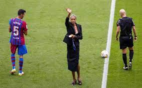 Putellas, mejor jugadora europea y mejor centrocampista del curso 2020-2021 según la UEFA; Sandra Paños, mejor portera; Irene Paredes, mejor defensa; y Jennifer Hermoso, mejor delantera, saltaron al terreno de juego del feudo azulgrana para recibir la ovación del público tras lograr unos trofeos que son fruto de la extraordinaria temporada pasada, en la que lograron el triplete