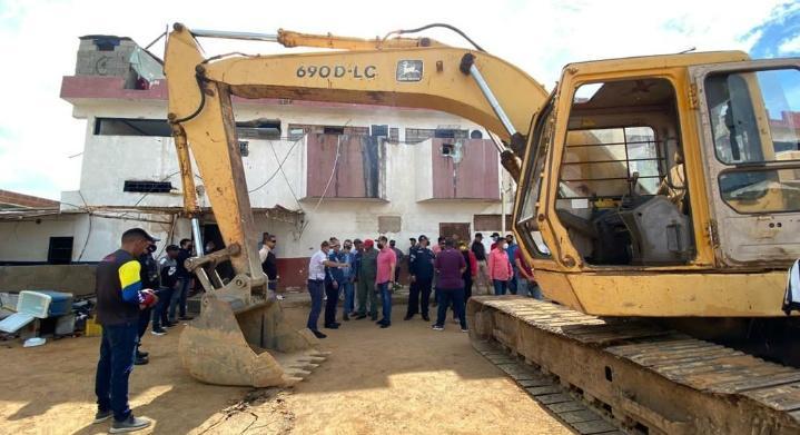 El derrumbe de la edificación se realiza en presencia de las autoridades regionales y municipales del estado Zulia, así como de miembros de la Comisión de la Revolución Judicial.