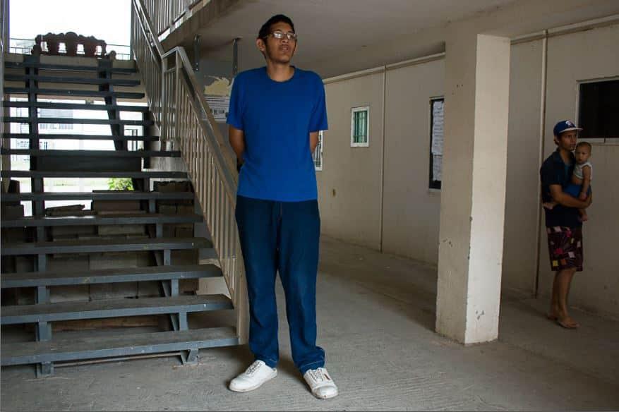 Sufre de una enfermedad llamada acromegalia con gigantismo, mide 2,38 metros y usa 72 de talla de zapato.