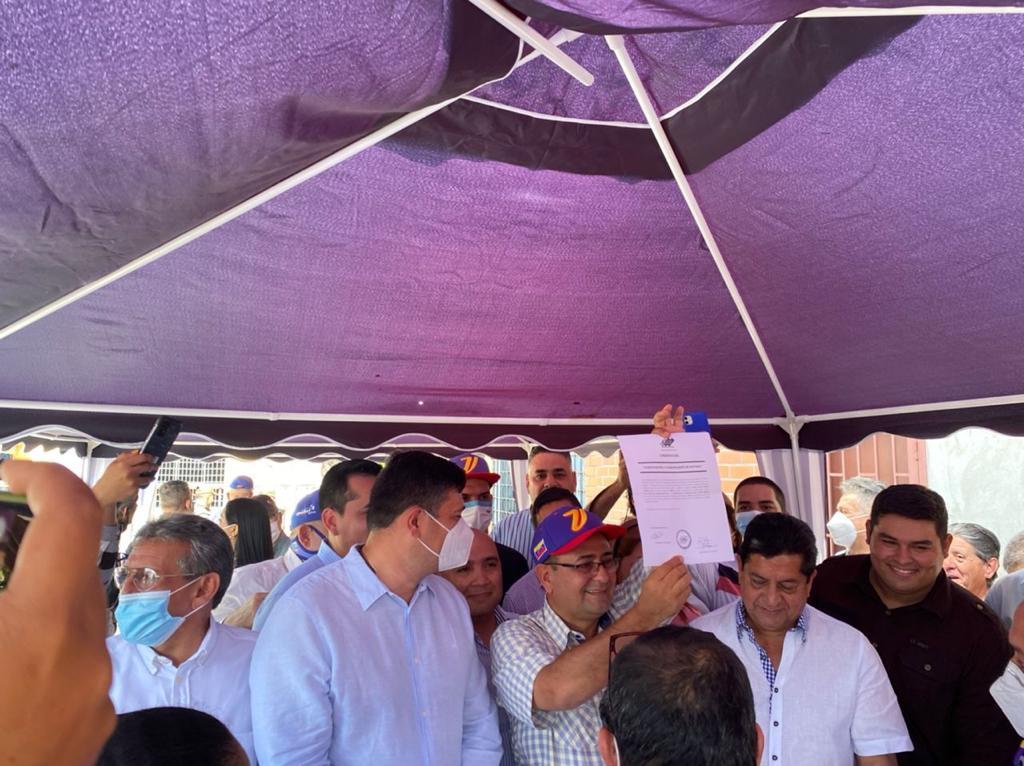 En el acto de proclamación Garrido estuvo acompañado por Freddy Superlano, quien resultó electo gobernador en los comicios del 21 de noviembre pero que por orden de la Sala Electoral del Tribunal Supremo de Justicia (TSJ) fue inhabilitó. Garrido recibió de parte de la Junta Regional las credenciales que lo declaraban como la nueva máxima autoridad del estado que había sido bautizado por el oficialismo como la «cuna de la revolución».