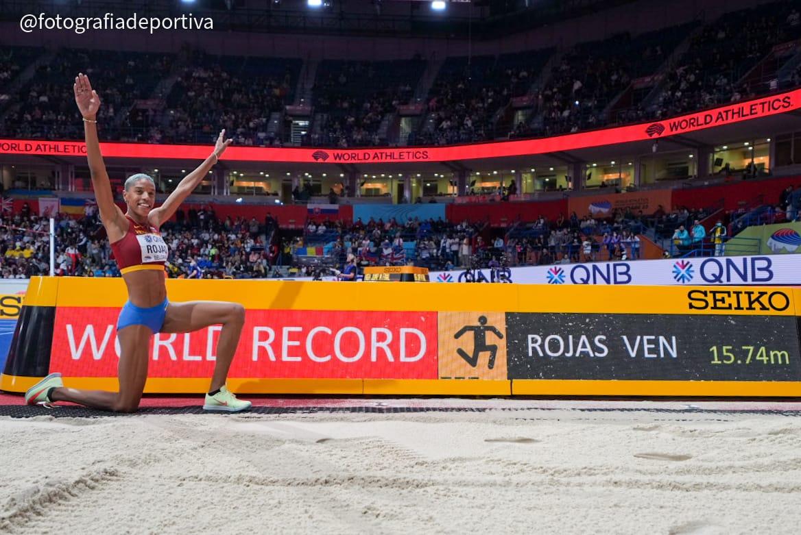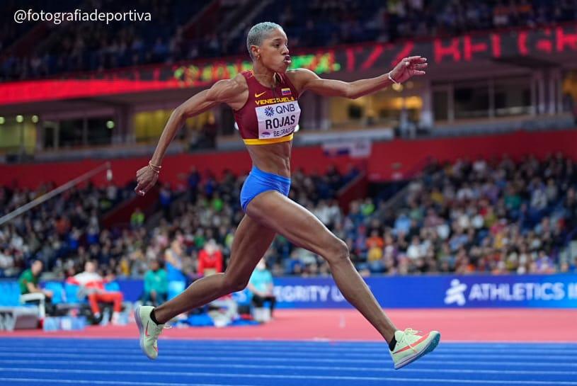 La caraqueña de 26 años consiguió un nuevo récord del mundo Indoor, en su sexto salto, con el que logró una brutal marca de 15.74m. Aplastó a todas en la competencia.