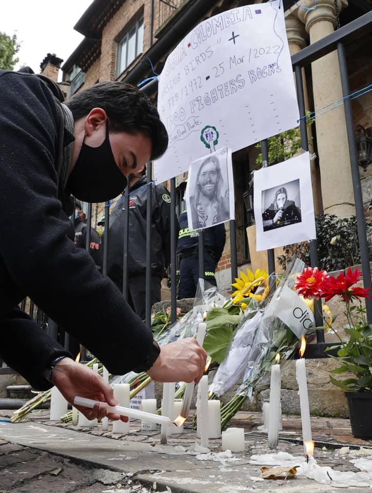 Seguidores del grupo estadounidense Foo Fighters se congregaron este sábado frente al hotel de Bogotá donde el baterista de la banda, Taylor Hawkins, falleció el viernes horas antes de dar un concierto en el Festival Estéreo Picnic.