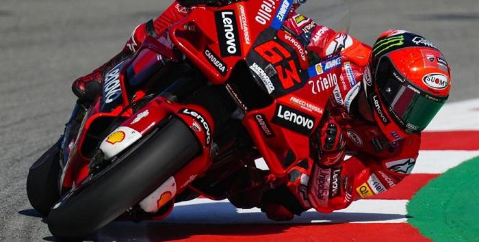 El piloto italiano protagonizó una auténtica exhibición al encadenar una serie de vueltas rápidas, perseguido por los también pilotos de Ducati, su compatriota Luca Marini, y su compañero de equipo, el australiano Jack Miller, con Aleix Espargaró (Aprilia RS-GP) como el primer representante «no Ducati» en la cuarta posición.