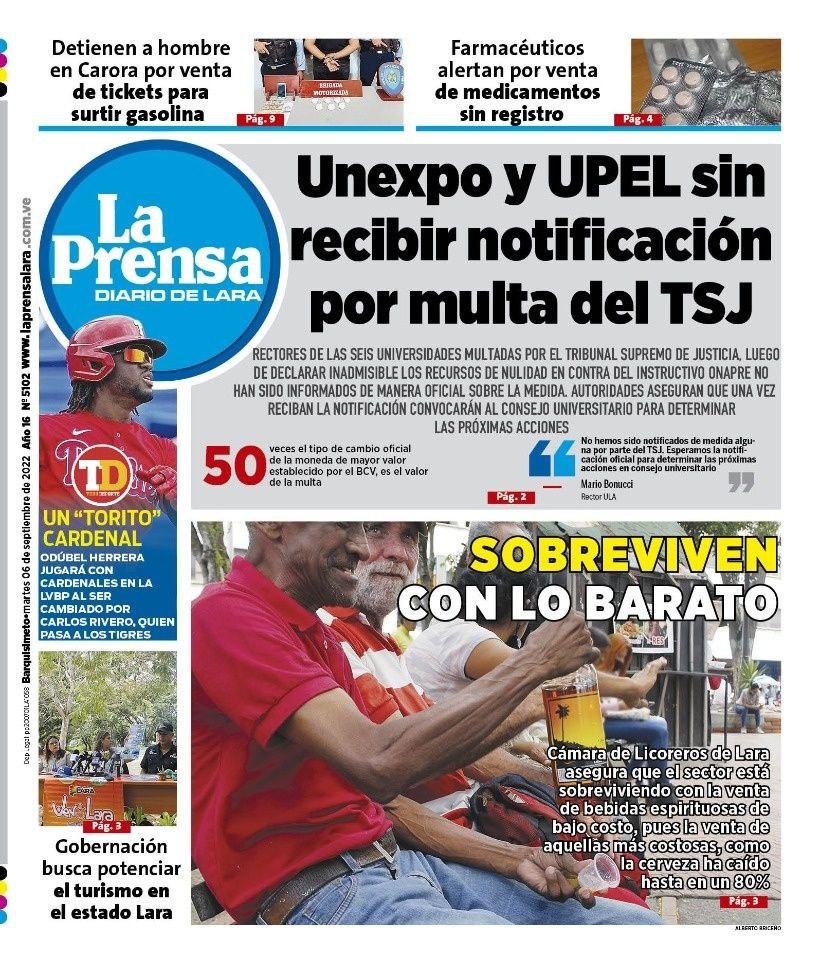 Les presentamos las portadas de los principales diarios de circulación nacional para este martes 6 de septiembre.