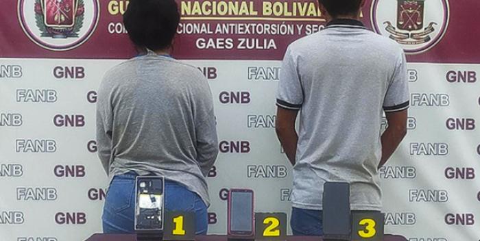 Una adolescente de 17 años y Youce Manuel Fuenmayor, de 28, fueron detenidos por efectivos de la Grupo Antiextorsión y Secuestro de la Guardia Nacional de Zulia por presuntamente incurrir en el delito de extorsión.
