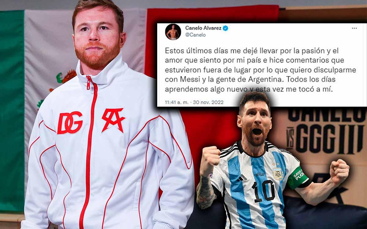 «Estos últimos días me dejé llevar por la pasión y el amor que siento por mi país e hice comentarios que estuvieron fuera de lugar por lo que quiero disculparme con Messi y la gente de Argentina», dijo el Canelo en Twitter.