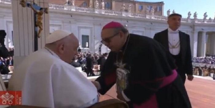 La alegría del Papa fue evidente al recibir el regalo, según se observa en la transmisión televisiva del Vaticano. Luego, monseñor Tulio compartió en las redes sociales su mensaje: