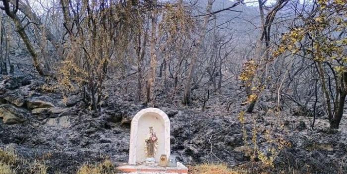 En una de las zonas donde el incendio ya fue apagado, se encontró una imagen de la Virgen del Carmen que no fue alcanzada por las llamas. La fotografía, que se ha vuelto viral en las redes sociales, muestra varios árboles carbonizados alrededor del altar donde se encuentra la imagen, que permanece intacta.