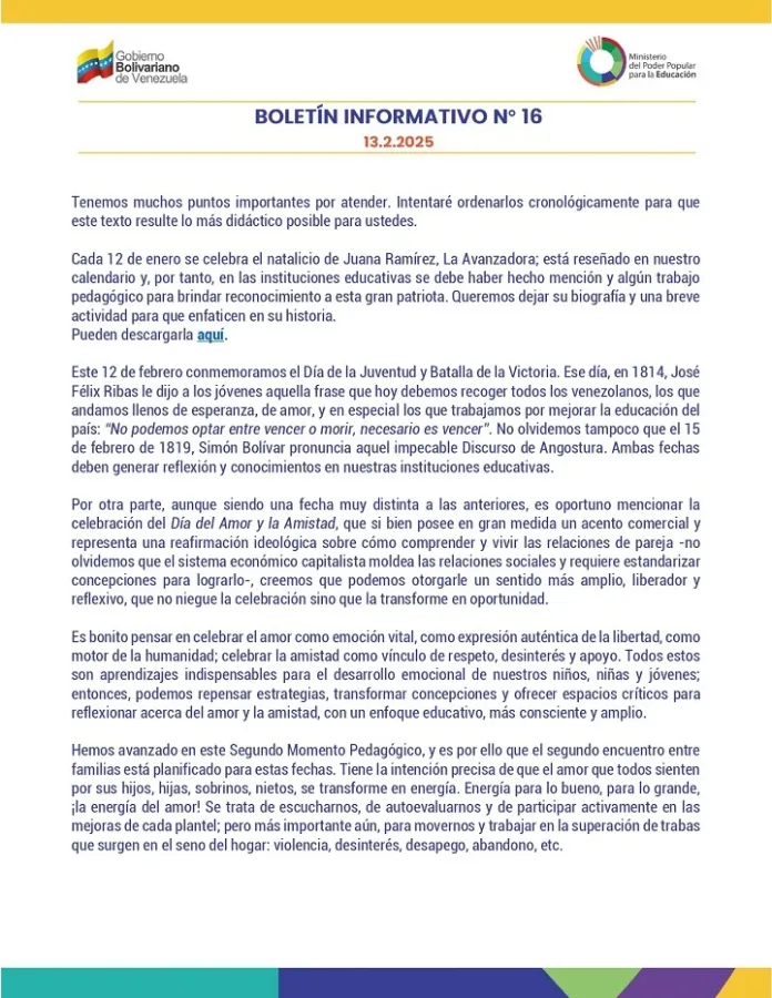 El ministro de Educación, Héctor Rodríguez, emitió un boletín en el que se hace énfasis en que «no autoriza de ninguna manera» la escogencia de reinas de carnaval dentro de las instituciones educativas del país o entre los estudiantes.