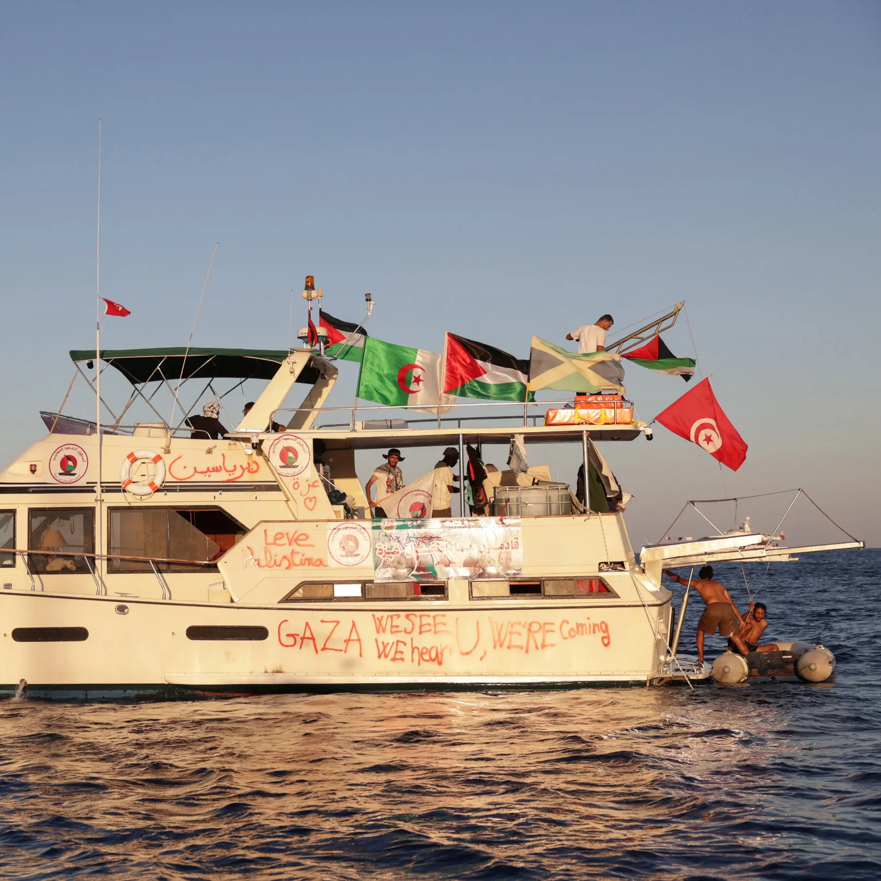 “Este abordaje militar en aguas internacionales expone, una vez más, la naturaleza criminal del régimen sionista, que ataca una misión civil y pacífica cuyo único propósito era llevar 5.500 toneladas de ayuda humanitaria a un pueblo palestino sometido al hambre y al exterminio”, detalla un comunicado.